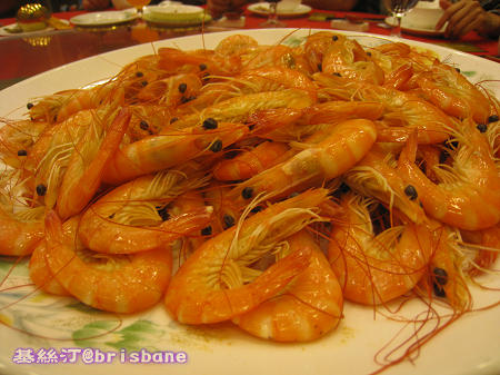 喜灼海生蝦:基絲汀很喜歡吃這道。蝦肉夠新鮮和彈牙。最愛蘸甜醬油和芥辣。總覺得新鮮水煮的蝦比起澳洲煮熟後,放在超市賣的蝦好吃得多呢。